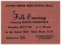 There were at least three Keiths in Hyde Park on July 5th 1969. One was yours truly, one was on stage with two Micks, a Bill and a Charlie, the other was Mr Christmas. Two of them later trucked on down to Essex Road, Leyton with psychedelic gleams in their eyes, for the fourth School Folk Evening.
