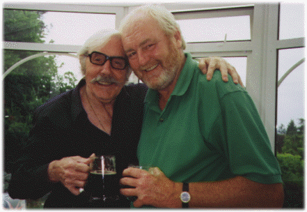 Noel and Eric Sykes. Taken at Eric's Surrey home in 2002. Eric had grown his hair and moustache to play a gardener in a film with Nicole Kidman....more